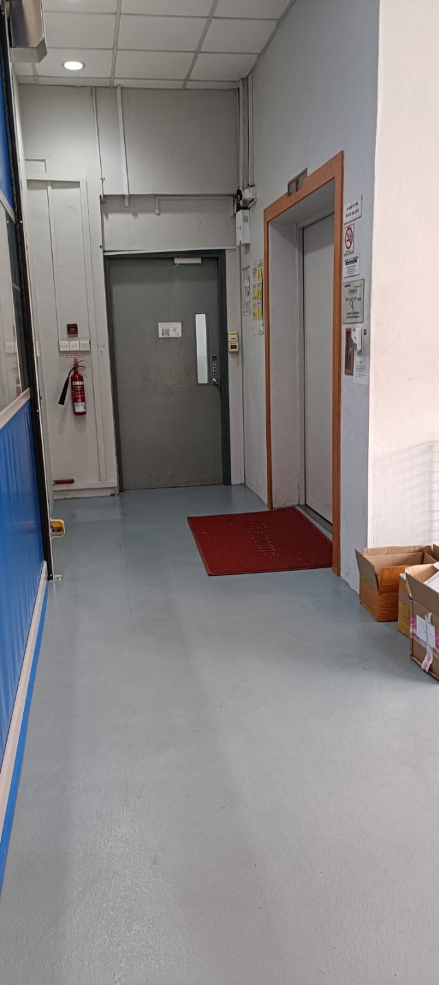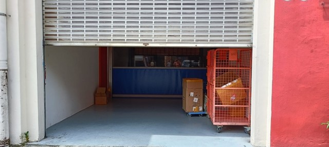 A 3-storey terrace warehouse with office facilities (ie. split-unit air-con and built-in cabinets)
